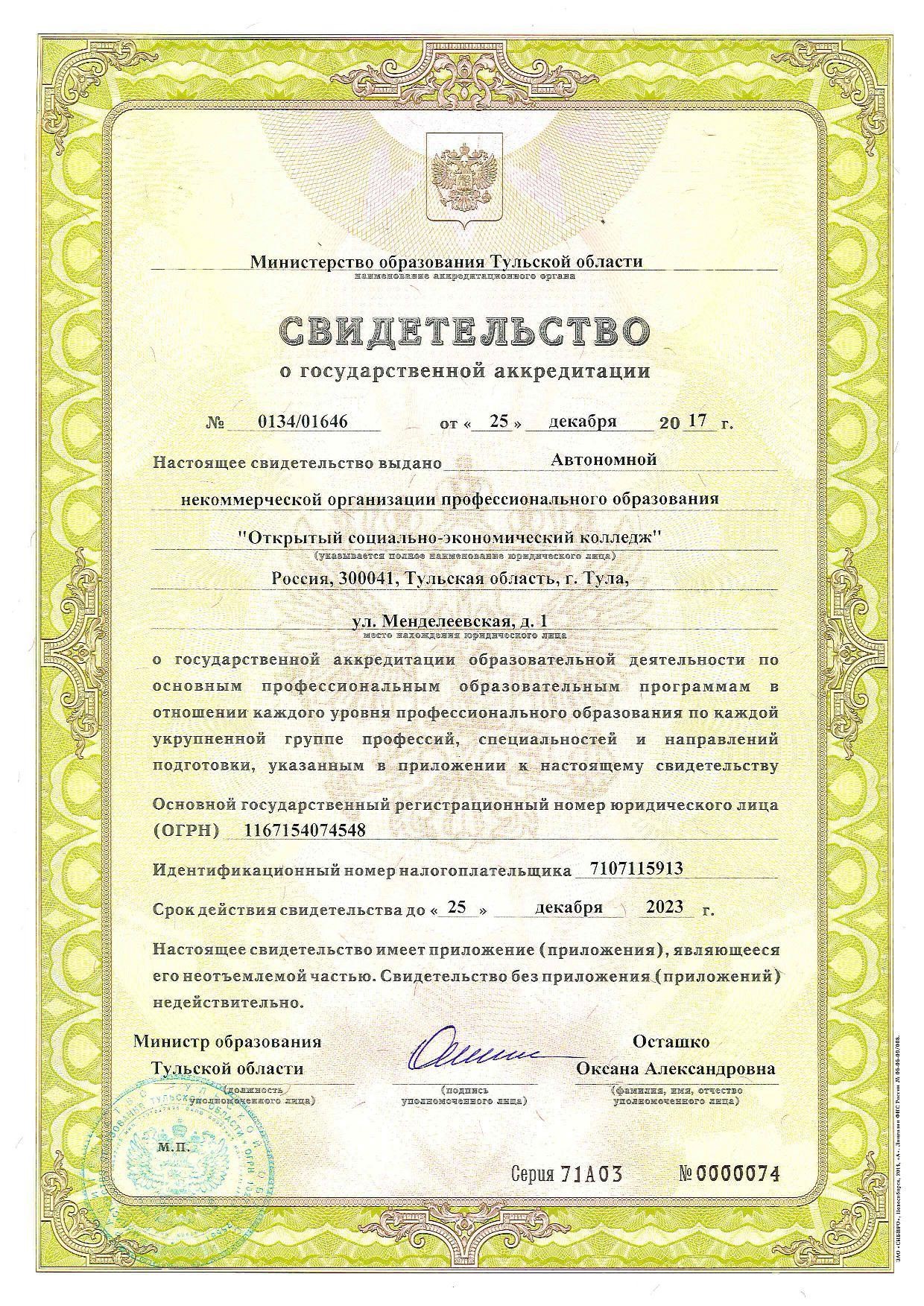 Поступление:на платной основе после 9 или 11 класса, по аттестату. На некоторых специальностях есть вступительные испытания.